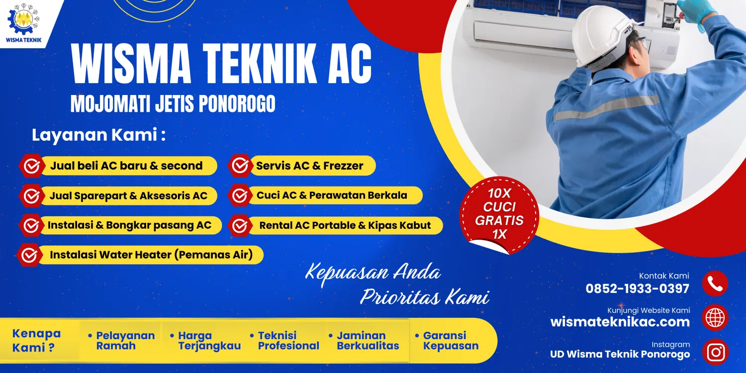 Kami Adalah Jasa Service AC Terpercaya Di Ponorogo Yang Siap Membantu Perawatan, Perbaikan, Serta Pemasangan AC Dengan Hasil Kerja Yang Rapi Dan Bergaransi. Dengan Pengalaman Teknisi Yang Handal, Kami Memastikan Setiap Layanan Dilakukan Secara Profesional Demi Kenyamanan Dan Kepuasan Anda.